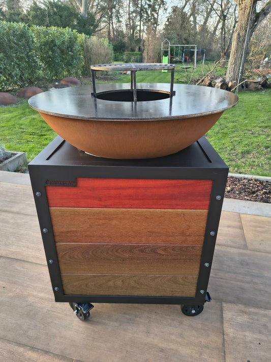 Un brasero plancha artisanal, fait main en Belgique, conçu pour offrir une cuisson parfaite, une durabilité extrême et un design unique.