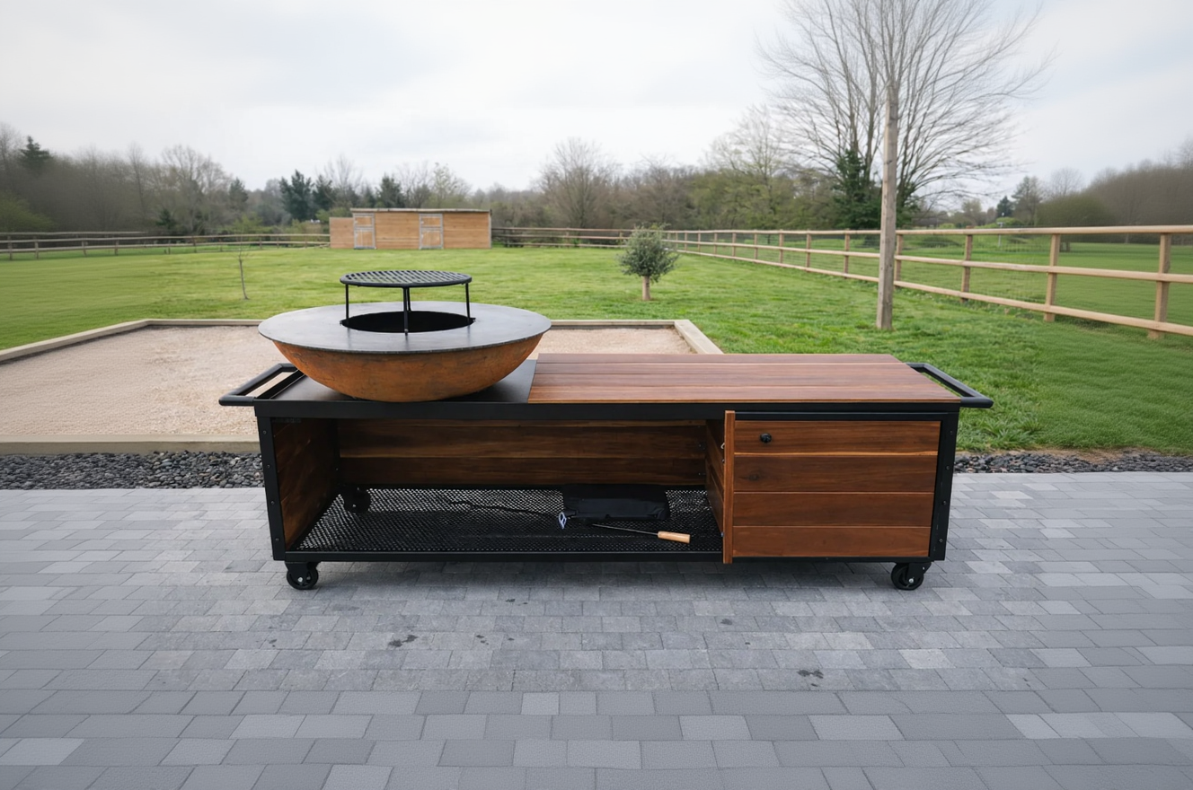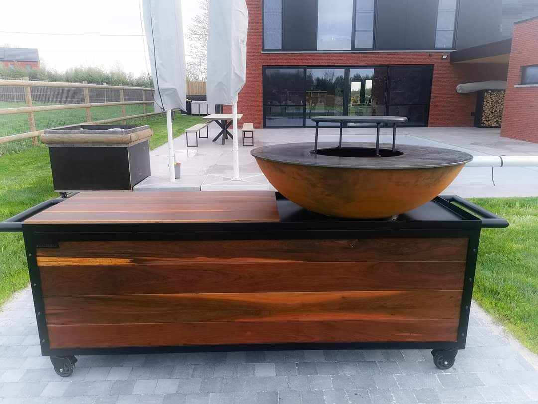 Un brasero plancha artisanal, fait main en Belgique, conçu pour offrir une cuisson parfaite, une durabilité extrême et un design unique.