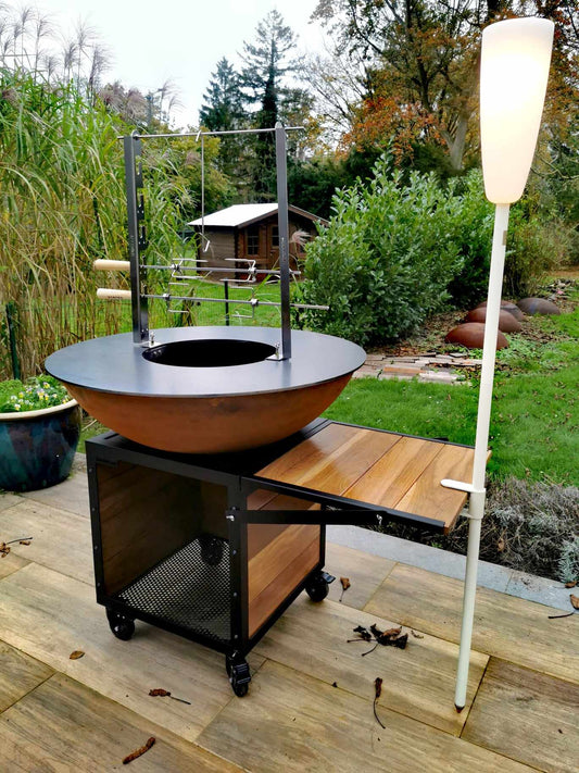 Imaginez ceci : l'arôme incomparable de la viande grésillante, les amis et la famille rassemblés autour, et l'admiration dans leurs yeux lorsqu'ils voient votre barbecue-plancha unique, forgé à la main. Nos barbecues-planchas sont non seulement conçus pour être performants, mais ils sont aussi une pièce maîtresse dans votre jardin. Chaque barbecue est conçu avec du bois exotique aux veinages différents qui reflètent l'art de sa création. Il n'y a pas deux barbecues identiques, ce qui fait du vôtre une pièce unique.
